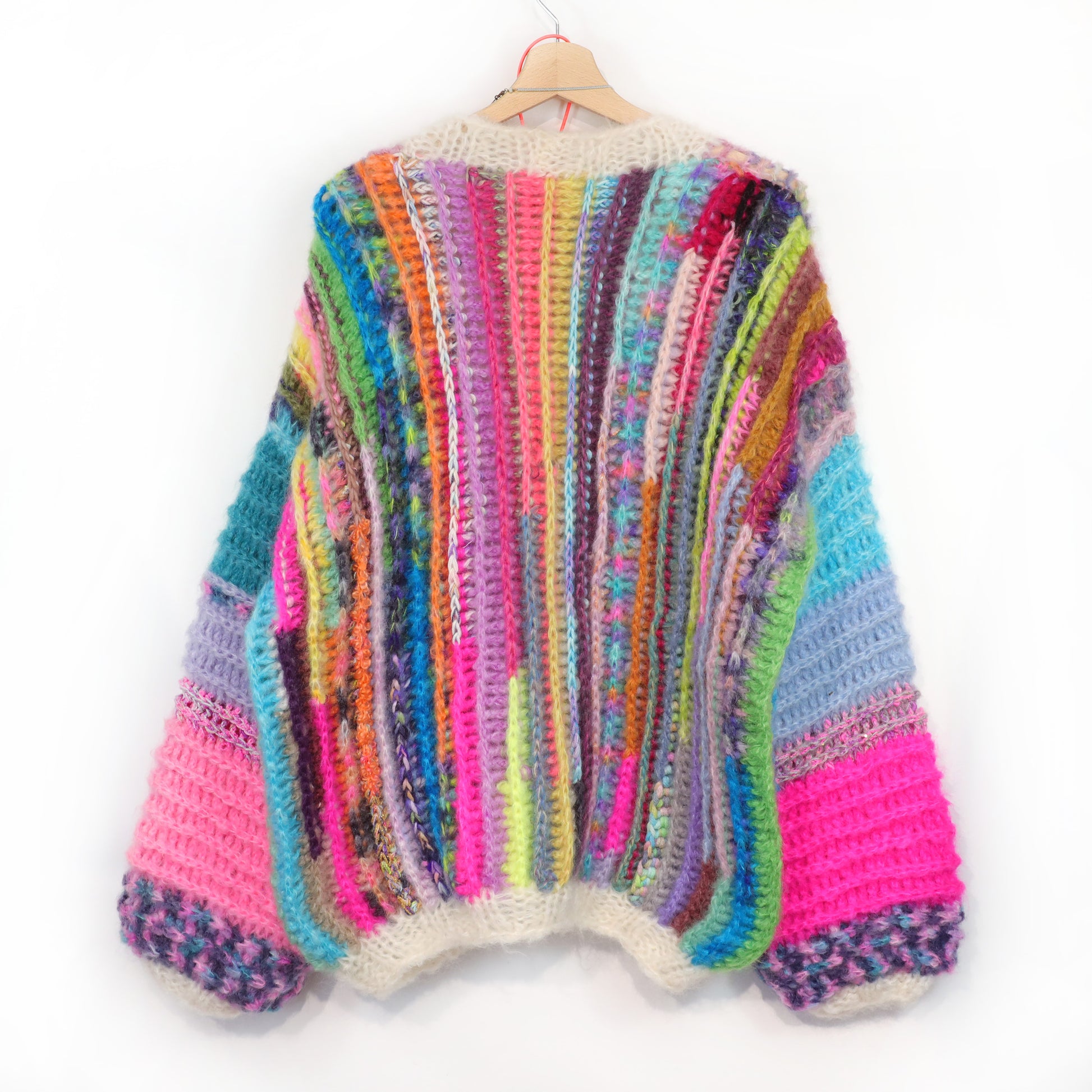 This is a handmade knit made by MYPZ in The Netherlands. Each cardigan or sweater is a unique piece and we take a lot of time and care to create these beautiful products. This beautiful sweater is made of a high quality mohair and does not pill. It is very light, warm and comfortable. These brushed yarns may shed a little but after a while, this will subside.