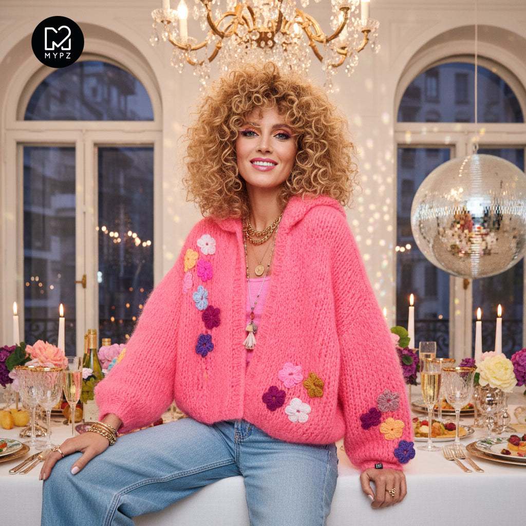 This is a handmade knit made by MYPZ in The Netherlands. Each cardigan or sweater is a unique piece and we take a lot of time and care to create these beautiful products. This beautiful sweater is made of a high quality mohair and does not pill. It is very light, warm and comfortable. These brushed yarns may shed a little but after a while, this will subside.