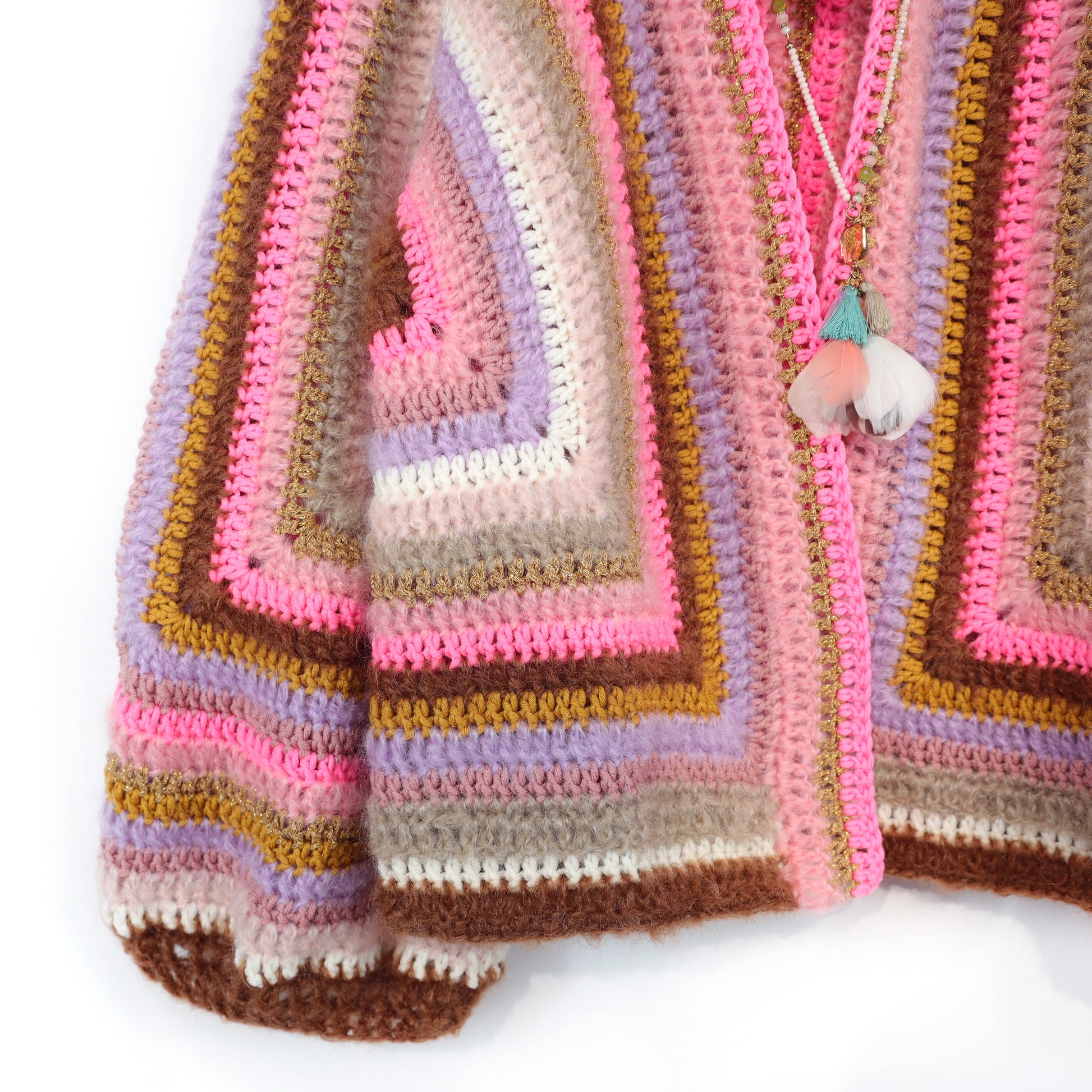 You crochet this cardigan with 1 strand MYPZ Chunky Kidmohair DK or 1 strand MYPZ Super Soft Merino.