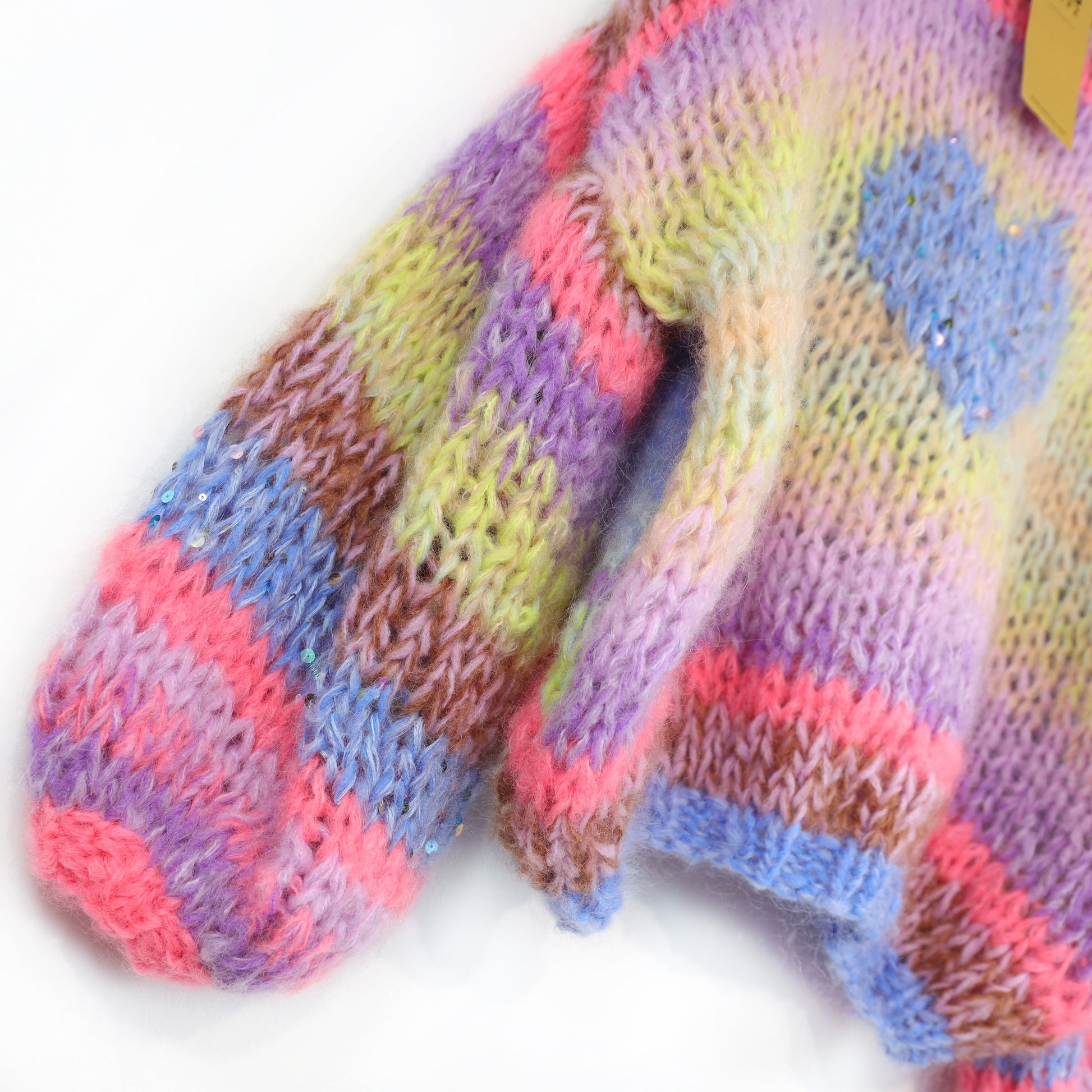 It’s very light, warm and comfortable. This kit contains MYPZ Fluffy, MYPZ Super Soft Merino + MYPZ Chunky Kidmohair DK, a high quality fine brushed mohair that does not pill. These brushed yarns may shed a little but after a while this will subside.