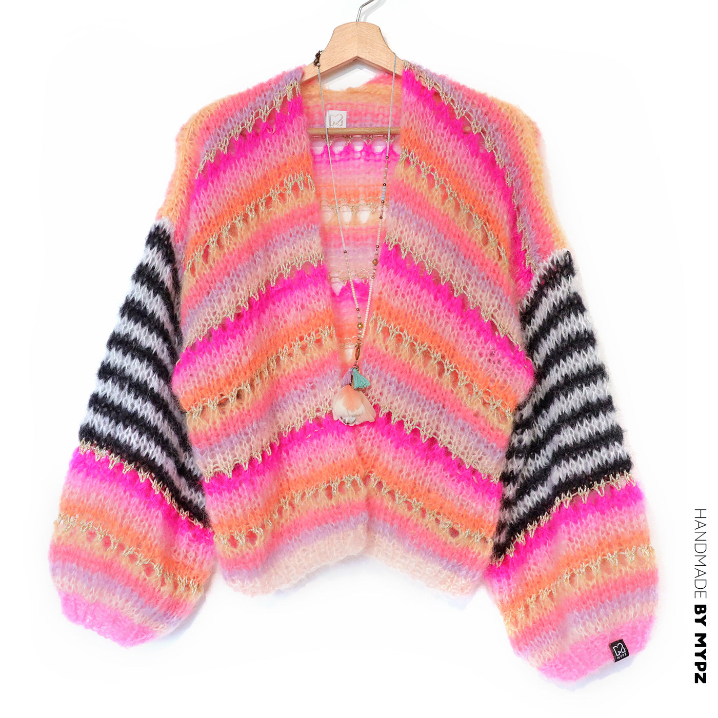 HANDMADE WITH LOVE BY MYPZ | This is a unique handmade luxury mohair cardigan. This beautiful cardigan is made of a high quality kidmohair and does not pill. It is very light, warm and comfortable. These brushed yarns may shed a little but after the first or two washes, this will subside.